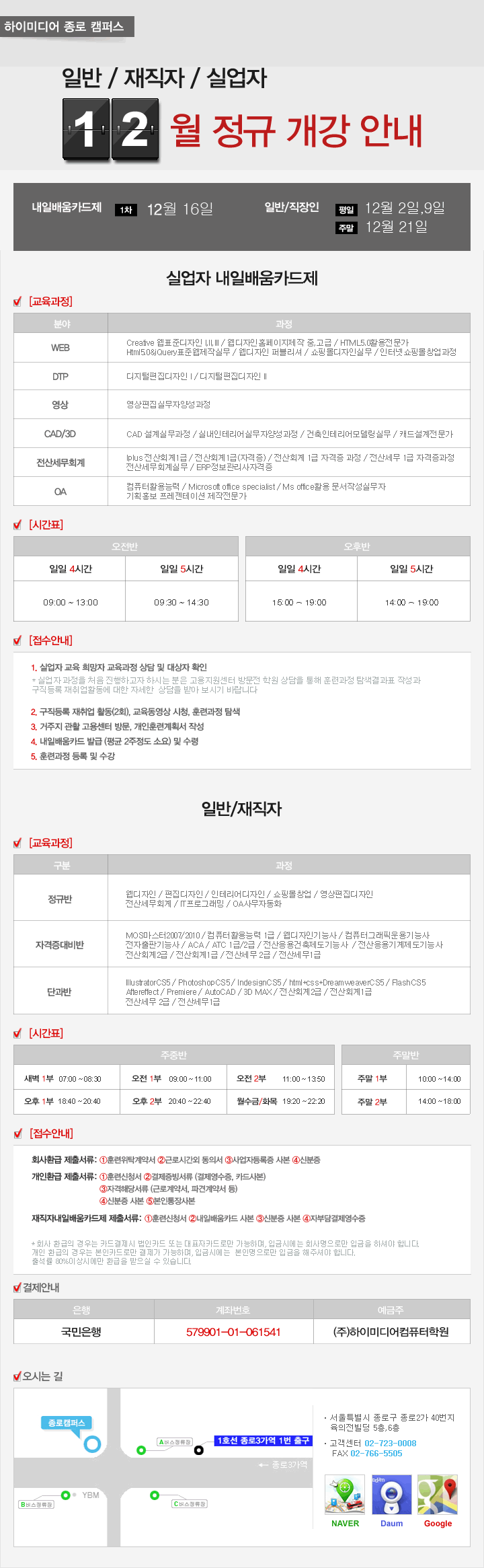 하이미디어컴퓨터학원 12월 정규 개강일 안내