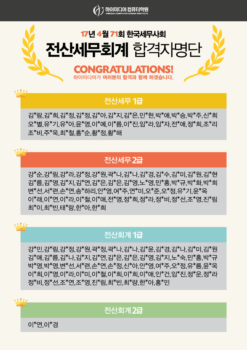 [종로]2017년4월71회 한국세무사회 합격자명단