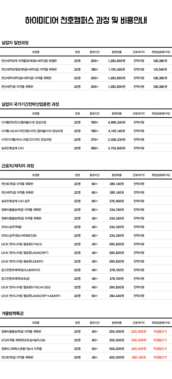 근로자카드 / 실업자 내일배움카드 90% ~ 100%  국비지원 됩니다.